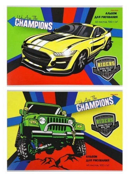 Альбом для рисования А4 40л. ТАЧКИ ЧЕМПИОНОВ МИКС (40-0007) 2 диз.,скреп, мелов. обл., офс