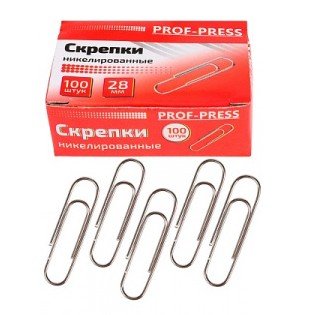 Скрепки металлические овальные никелированные 28 мм (СКР-3137) 100 шт в карт.кор