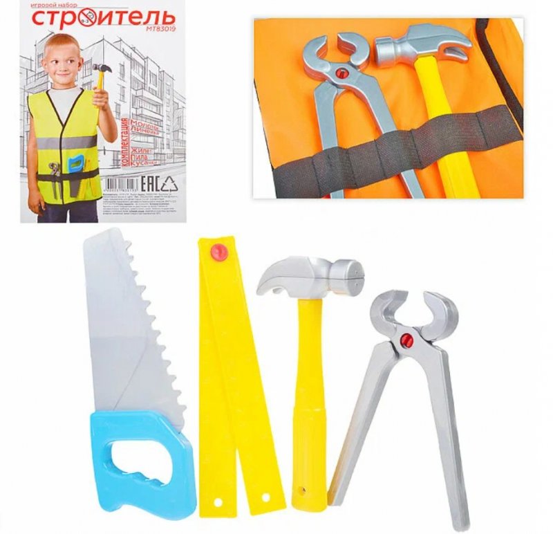 Набор строителя (жилет,молоток,линейка,пила,кусачки) МТ83019