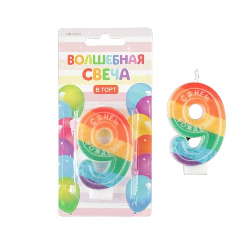 Свеча цифра с цветным нанесением 9 "С Днем рождения", 4,3 х 7,1 см 7501434
