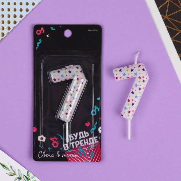 Свеча в торт "7", 5,5 х 8 см 7725287
